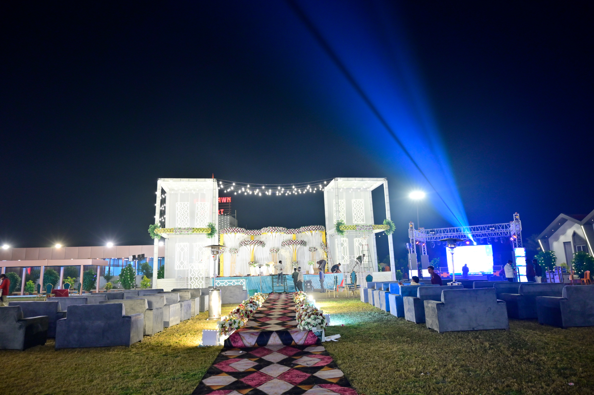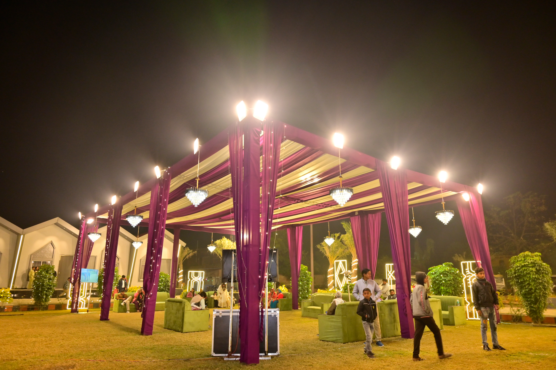 We take pride in our spacious, well-maintained lawn, ideal for weddings, receptions, parties, corporate events, and social gatherings. Our venue is complemented by large parking facilities, ensuring convenience and ease for all guests.